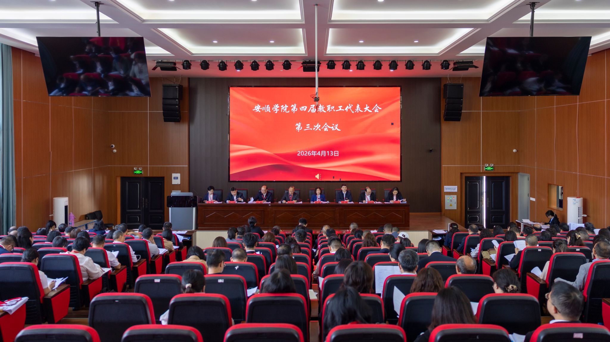 yl8cc永利官网第四届教职工代表大会第三次会议会场2026年4月13日,yl8cc永利官网隆重召开第四届教职工代表大会第三次会议。学校领导班子成员、全校教职工代表、列席代表共188人出席会议。主席团第一次会议上,审议通过《yl8cc永利官网第四届教职工代表大会第三次会议议程(草案)》《yl8cc永利官网第四届教职工代表大会第三次会议日程(草案)》yl8cc永利官网第四届教职工代表大会第三次会议秘书长、副秘书长,代表团团长、副团长建议名单。大会预备会议上,yl8cc永利官网党委副书记李琳作《...